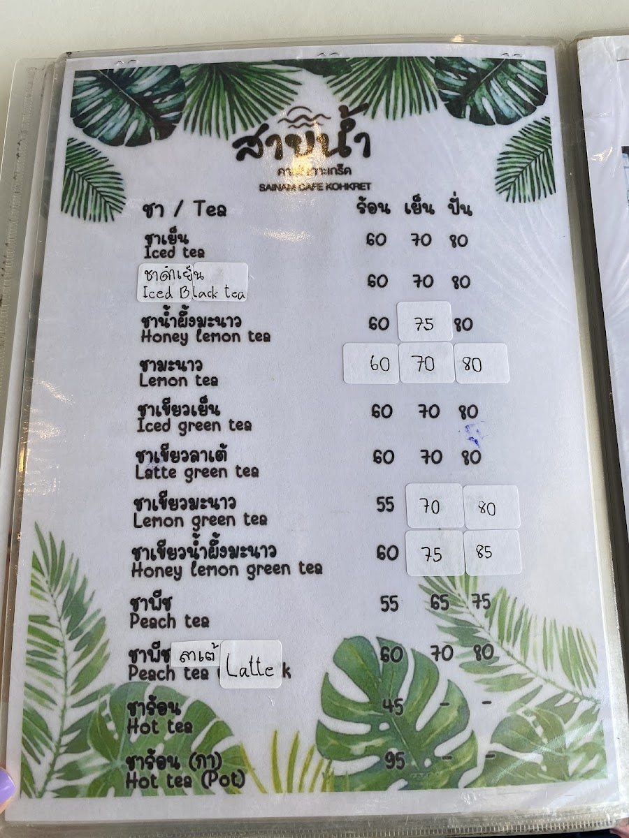 Sai nam cafe Menu